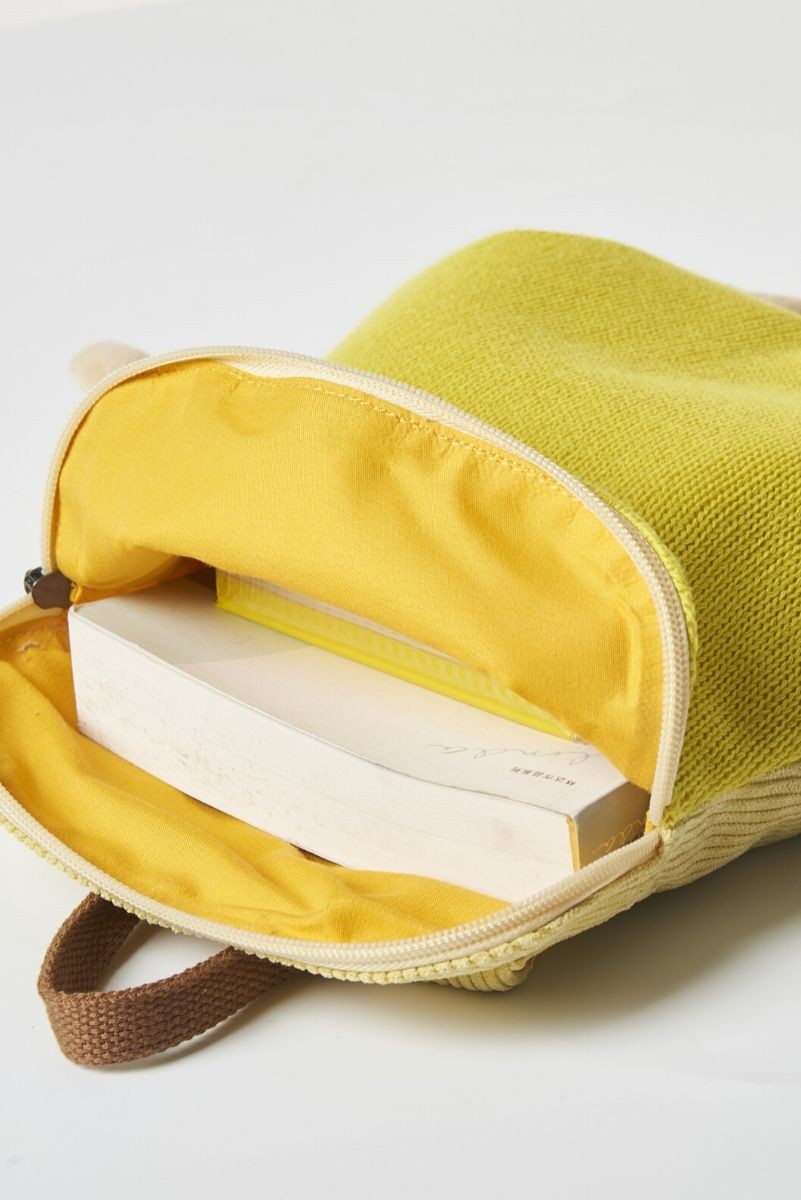 Nuestra mochila pollito de crochet está confeccionada en algodón natural 100%, hipoalergénico, muy suave al tacto, en color amarillo. Un divertido y tierno diseño en forma de animalito. Hemos pensado hasta el último detalle, como sus alitas y su pico. Un excelente compañero de viaje para los niños. La mochila pollito dispone de un espacio de almacenaje con cierre en cremallera, asas y cintura ajustables para llevarla cómodamente.
