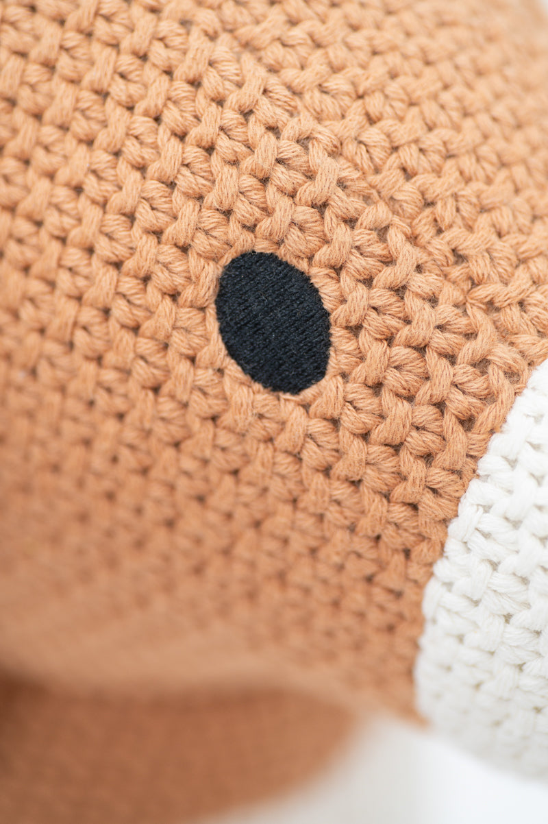 Nuestro peluche perro Toby de crochet está confeccionado en algodón natural 100%, hipoalergénico, muy suave al tacto, de colores verde y amarillo. Un bordado realizado con mimo y cuidando cada detalle, como su rabito, orejas largas y manchas que le aporta un toque especial.
