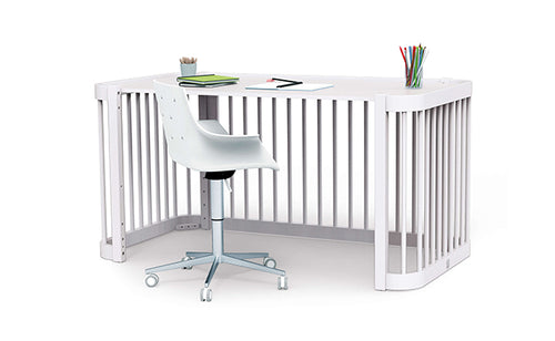 Cuando dejes de usarla como cama o cuna, podrás convertir la cuna CREA, de manera práctica y rápida, en un escritorio (sin elementos adicionales) que podrás utilizar tu hijo o hija durante muchos años.