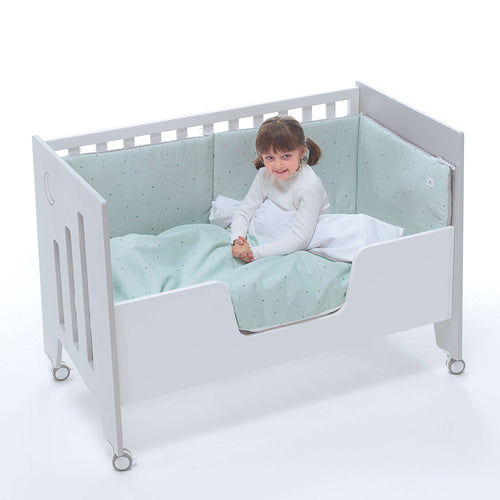 Cuando tu bebé ya tenga suficiente movilidad y quieras que tenga total autonomía para irse a la cama y subir y bajar por sí solo, puedes convertir la cuna en una práctica camita infantil de 60x120cm adquiriendo la barrera junior (ref. WJB180-M77).