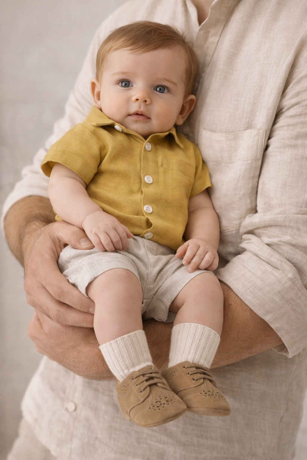 Este conjunto de pantalón corto y camisa de lino para recién nacido de la reconocida marca europea Mayoral es ideal para los primeros meses de vida (0 a 1 mes). Confeccionado con materiales ecológicos Ecofriends, brinda comodidad y frescura natural para tu bebé. Perfecto para mantenerlo fresco y con estilo en los días cálidos, además de cuidar el planeta desde el primer día. ¡Un básico adorable y sostenible que querrás para tu pequeño explorador!
