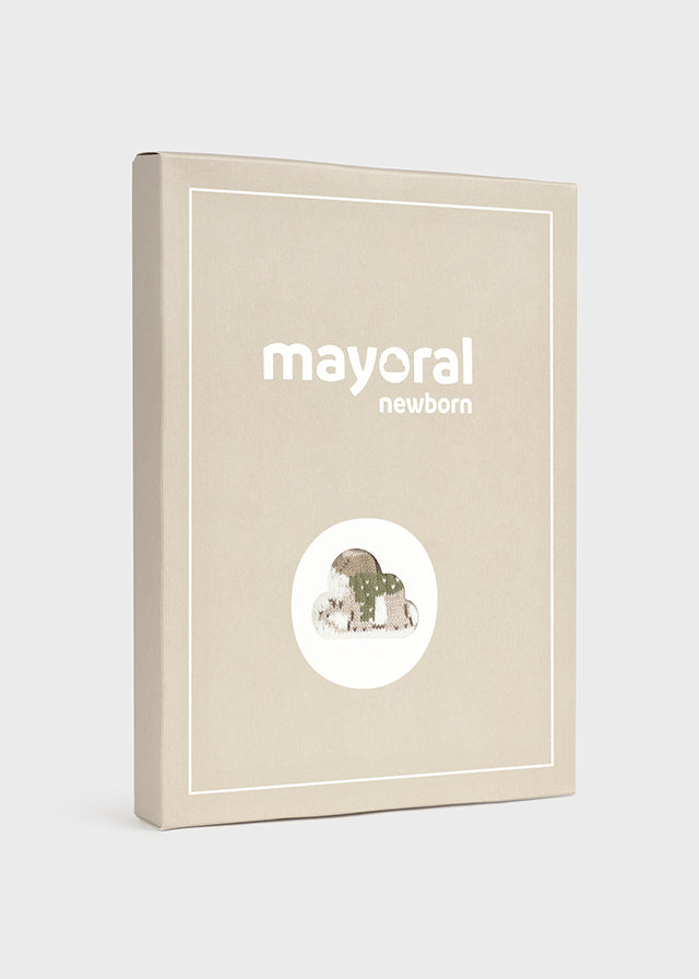 Jersey de manga larga para recién nacido. Cuello redondo. Botones en el hombro para facilitar la puesta. Tejido de punto tricotosa de tacto suave y agradable. Dibujos en punto jacquard.