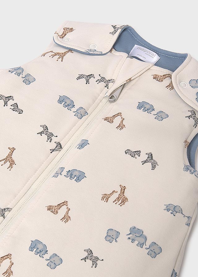 Saco de dormir para mantener abrigado de forma segura a tu bebé, al tiempo que evitas que se destape. Tiene tirantes regulables a diferentes alturas y bajo ajustable con botones a presión. Su indicador de aislamiento térmico TOG 2 lo convierte en un saco acolchado y cálido. Cierre con cremallera. Modelo con forro interior. Es talla única y mide aproximadamente 70 cm de largo desde el hombro.
