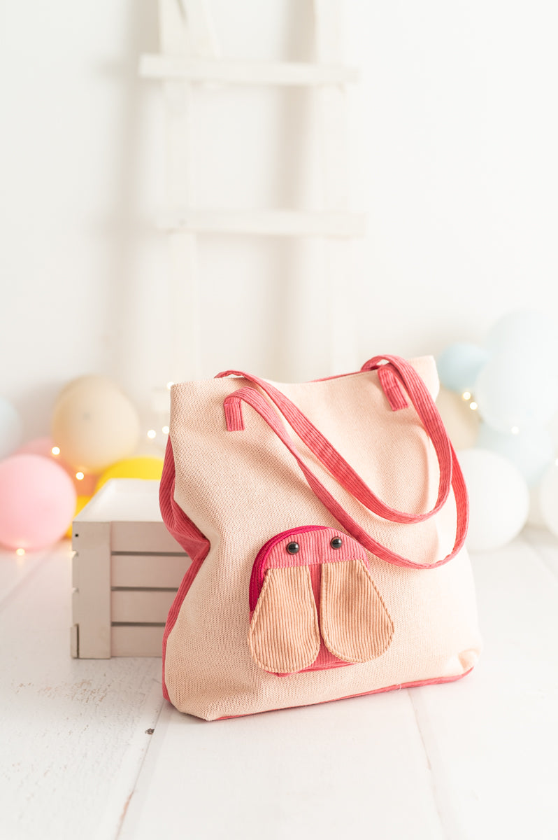Nuestro bolso shopper mariquita en color rosa está confeccionado en algodón natural 100% y pana, muy suave al tacto. Un divertido y tierno diseño con bolsillo con cremallera en forma de divertida mariquita. El bolso dispone de un espacio de almacenaje con cierre botón magnético y asas largas para colgar.