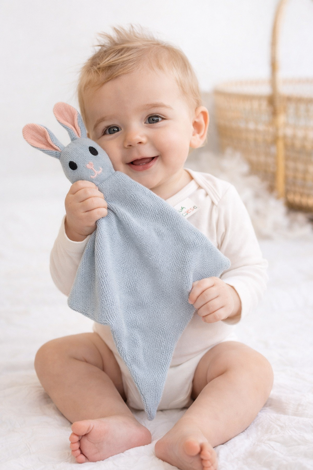 Este doudou conejito azul ha sido cuidadosamente diseñado para apoyar el desarrollo integral de tu bebé.