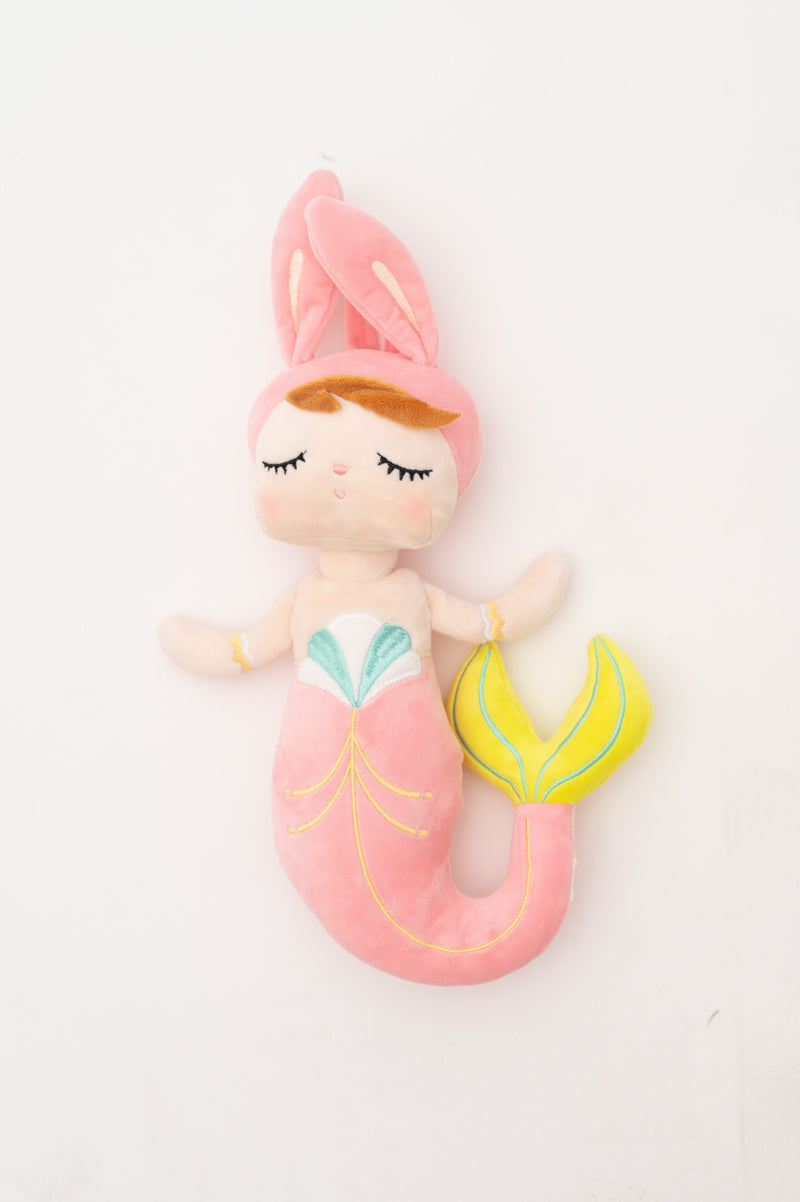 Nuestra muñeca sirena Lana está confeccionada en tejido extra suave y muy agradable al tacto. Su tierno diseño con cola color rosa y orejitas lo convertirá en la muñeca inseparable de tu hija. Lana es más que un juguete: es una compañera de mágicas aventuras y un símbolo de amor y creatividad. Se vende en cajita regalo. Lleva asa colgante en la cabeza para poder colgarla del carrito o mochila.