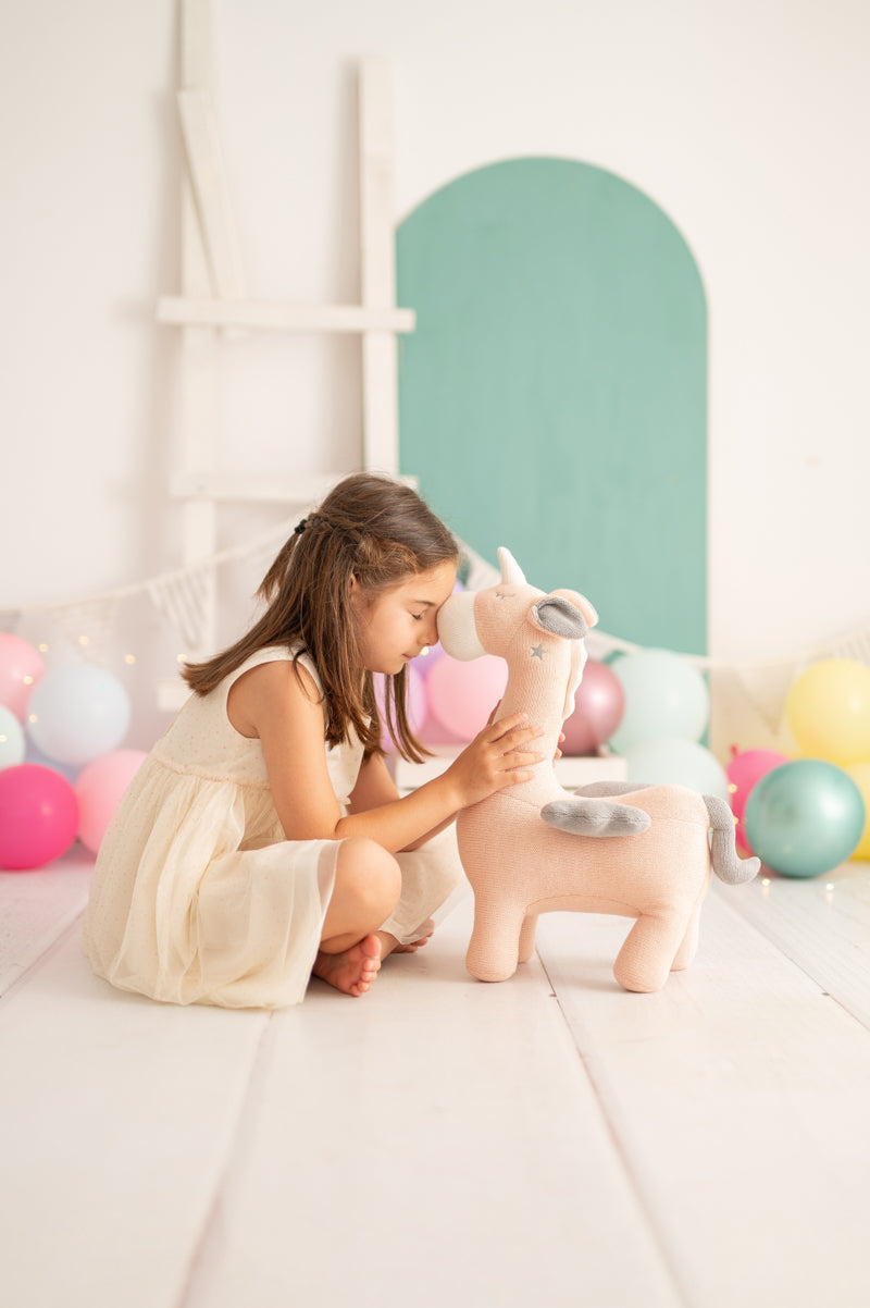 Descubre nuestro peluche unicornio Peggy de crochet 100% algodón natural, un juguete artesanal ideal para bebés y niños pequeños. Este adorable peluche de algodón combina diseño, suavidad y sostenibilidad para acompañar en los mejores momentos de juego, descanso y ternura de los más pequeños.
